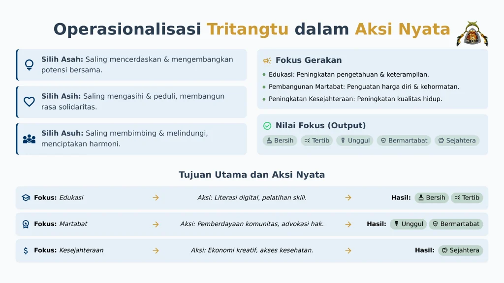 Output: Terwujudnya solidaritas komunal dan keharmonisan sosial (Buana Tengah) melalui gotong royong.